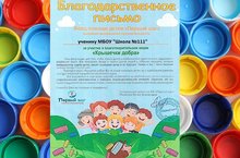 Учащиеся нашей школы приняли участие в благотворительной акции "Крышечки добра". Наиболее активные из них получили благодарственные письма от организаторов акции.