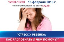 16 февраля 2018 г. с 12.00 до 13.30 состоится Республиканское родительское интернет-собрание «Стресс у ребенка: как распознать и чем помочь?»Он-лайн трансляция будет вестись на сайте Казанского инновационного университета имени В.Г. Тимирясова (киу. рф).Задать свои вопросы можно по адресу: roditelirt@mail.ru -