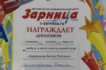 Поздравляем ученицу 10 класса Назмутдинову Камиллу за победу в интеллектуальной игре "Зарничная Битва Разумов"!