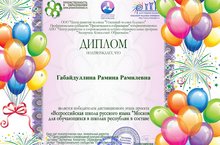 Поздравляем ученицу 8 класса Габайдуллину Р., ставшую победителем дистанционного этапа проекта "Всероссийская школа русского языка "Московия" для обучающихся в школах республик в составе РФ".