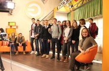 Ученики 9 А класса Школы №111, в рамках профориентации, посетили Телекомпанию «Эфир». Ребятам рассказали как проходят сьемки передач и про интересную работу на телевидении. После встречи многие ребята заинтересовались работой журналиста. -