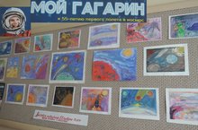 В школе прошла выставка работ учащихся "Мой Гагарин", посвященная 55-летию полета человека в космос.