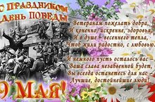 День победы — значимый и волнующий для каждого жителя нашей страны праздник, который мы отмечаем как дань памяти и глубокого уважения славным защитникам Отечества, всем, кто самоотверженно, героически на фронте и в тылу приближал долгожданный день Великой Победы.Это то, что объединяет нас и делает непобедимыми перед лицом любых испытаний. Завоеванная старшими поколениями Победа и сегодня вдохновляет нас на новые свершения, укрепляет наш дух, помогает преодолевать трудности и идти вперед.Низкий поклон Вам, дорогие ветераны и добрая память всем героям, кто не дожил до этого светлого дня! Крепкого Вам здоровья и долгих дней жизни!С Днем Великой Победы!