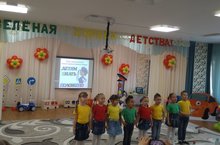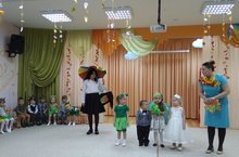 Сегодня прошли осенние утренники в младших группах№4,5,6. Дети читали стихи, пели песни, водили хороводы, смотрели инсценировку с перчаточными куклами, играли в подвижные игры «Собери листики», «Тучка и дождик».