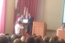 На ежегодном августовском расширенном совещании работников образования, нашему саду был вручен сертификат за 2 место по итогам городского смотра-конкурса среди дошкольных образовательных учреждений "Игровая площадка- территория оздоровления,воспитания,развития"