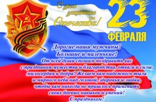 Вот совсем скоро наступит 23 февраля… И наши мальчики уже начинают получать поздравления с Днем армии российской. 23 февраля — символ мужественности и благородства. Им только предстоит в будущем пройти школу настоящих мужчин. Сегодня же хочется пожелать нашим мальчикам меньше разочарований, больше преданных друзей и только мирного неба над головой. Всегда защищайте слабых, будьте уверены в себе, хорошо учитесь, открывайте для себя что-то новое и интересное, не расстраивайте и любите родителей, уважайте девочек! С праздником, наши дорогие!