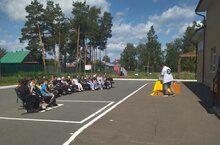 Сегодня двенадцатый день лагеря начался как обычно: прием детей, зарядка на свежем воздухе, завтрак. Потом с ребятами ходили в сквер "Маленький принц", где специально для нас провели народный праздник "Сабантуй". Для детей организовали такие конкурсы, как бег в мешках, бег с яйцом, перетягивание канатов, флешмоб, при участии детей поставили концерт и конечно было много подарков. После обеда на улице играли в вышибалы, кошки-мышки, догонялки и т.д.