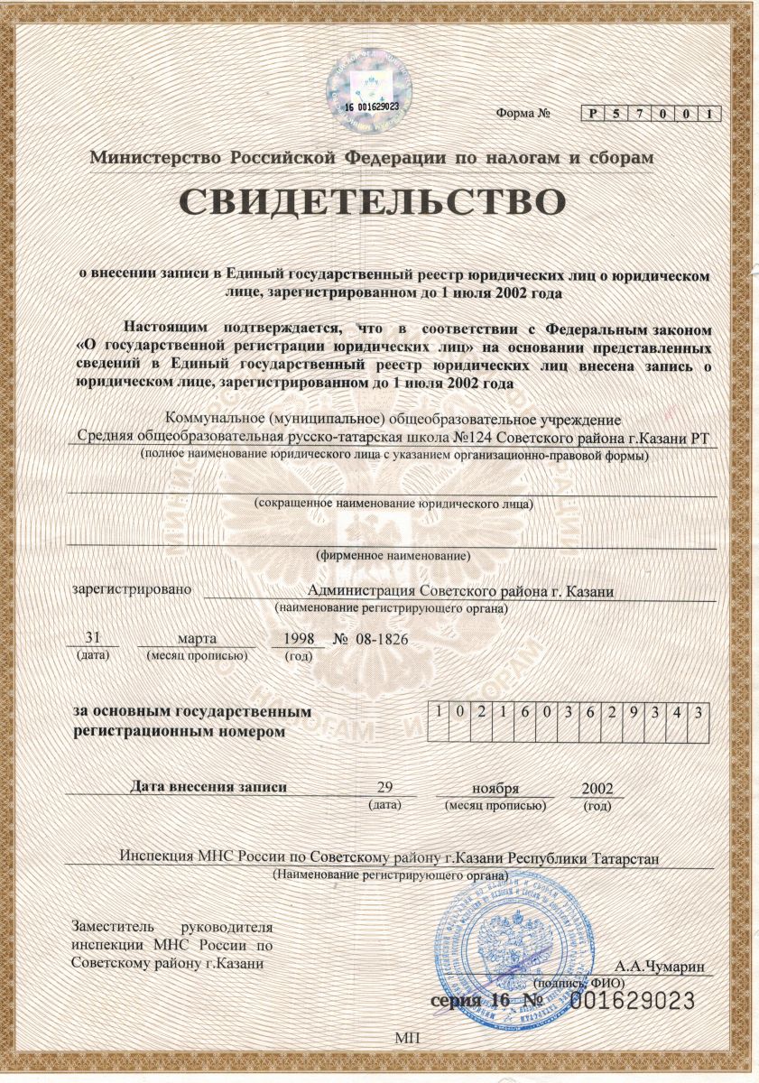 МБОУ «Средняя общеобразовательная русско-татарская школа №124» Советского района г. Казани/ Казан шәһәре Совет районының “124нче рус-татар урта гомуми белем мәктәбе” гомуми белем муниципаль бюджет учреждениесе