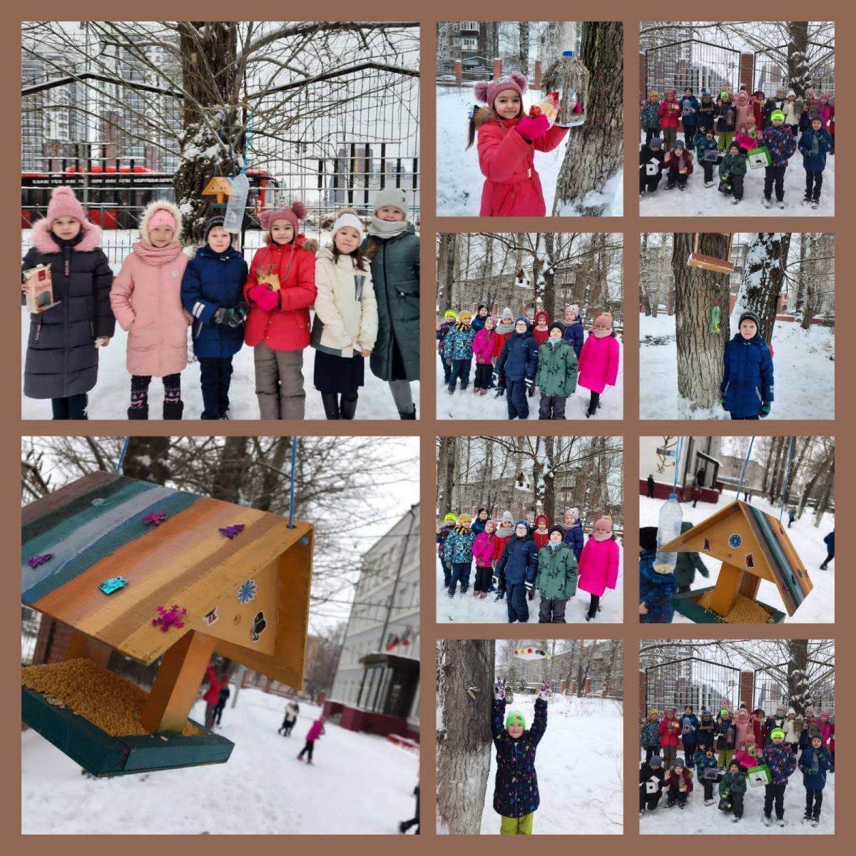 -Сделали кормушки и развесили их в школьном дворе.