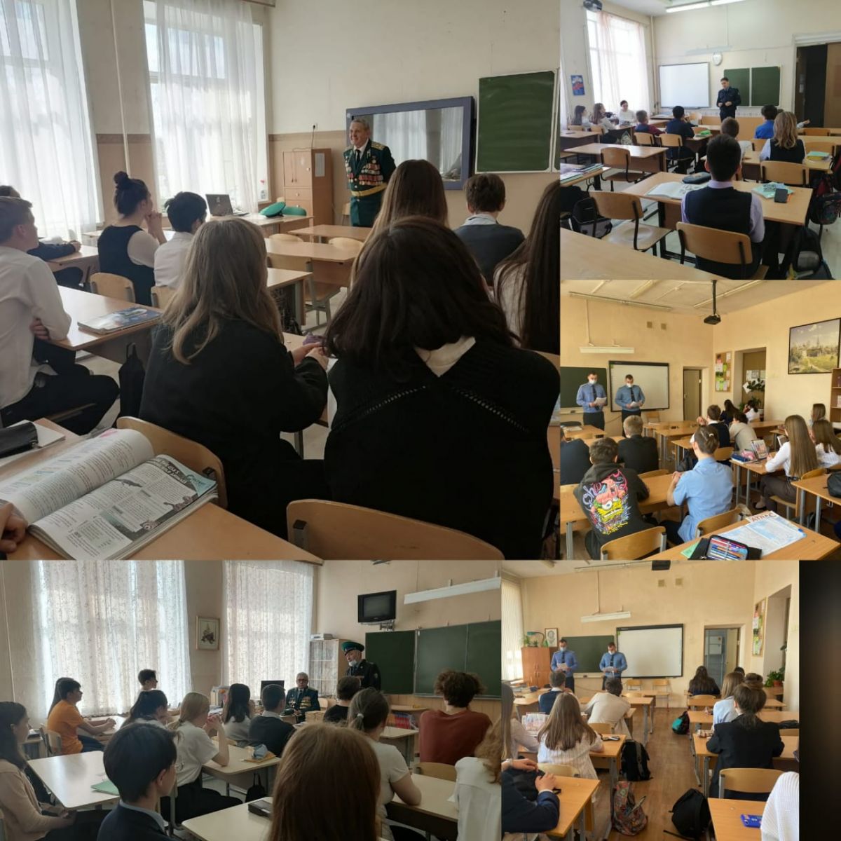 Сегодня в гимназии прошёл Урок мужества, посвящённый 76-ой годовщине Победы над фашистской Германией. Ветеранская организация пограничной службы ФСБ по РТ в лице председателя совета ветеранов пограничной службы ФСБ РФ по РТ полковник в отставке Каримов Ш. З., ветераны- полковник в отставке Гимаев К. Ш. и майор в отставке Фатыхов И. Х., действующие сотрудники КПП "Казань - аэропорт".
