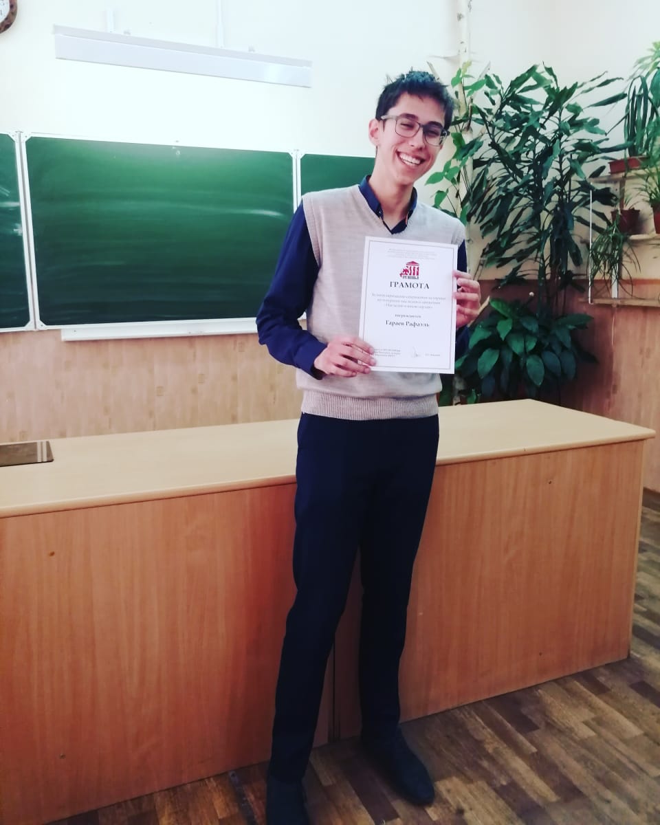 Поздравляем Гараева Рафаэля , ученика 11 А класса за активное участие в работе детско-юношеского движения ТРО ВООПиК "Наследие в юном сердце". 22.04.2021.