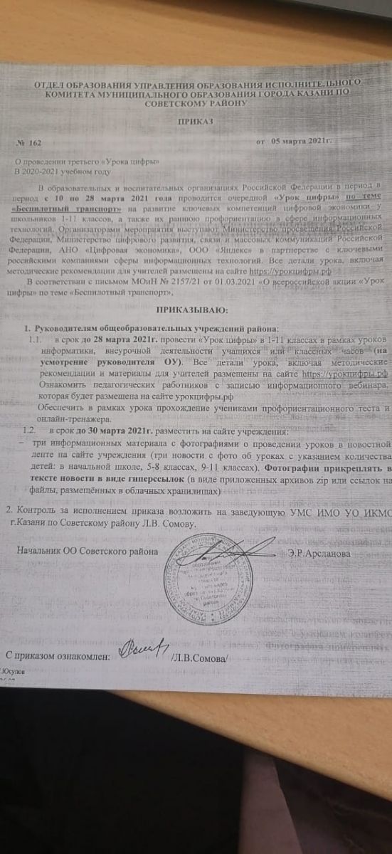 "Урок цифры" по теме "Беспилотный транспорт" 13.03.2021