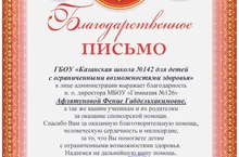 С 1 по 10 декабря в Татарстане проходила традиционная Декада инвалидов. Учащиеся МБОУ «Гимназия №126» не остались в стороне. По школе путешествовала «Банка добра», куда любой желающий мог положить свои пожертвования. Приятно осознавать, что ни один ученик, ни один родитель не остался в стороне. Все собранные средства были направлены в ГБОУ «Казанскую школу № 142 для детей с ограниченными возможностями здоровья». В ответ мы получили Благодарственное письмо. От того, что кому-то была оказана помощь, на сердце стало чуточку теплее. Благодарность