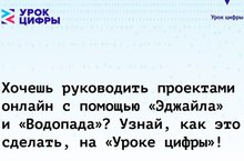 В образовательных и воспитательных организациях Российской Федерации в период до 24 апреля 2019 года в рамках Всероссийского мероприятия «Урок Цифры» проводится урок по теме «Управление проектами», направленный на развитие ключевых компетенций цифровой экономики у школьников 1-11-х классов, а также на их профориентацию в сфере информационных технологий.