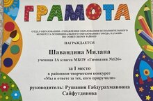 Поздравляем ученицу 1А класса Шавардину Милану. I место место в районном творческом конкурсе "Мы в ответе за тех, кого приручили". Благодарим за подготовку учителя начальных классов Сайфутдинову Рушанию Абдурахмановну. Желаем дальнейших успехов и побед.