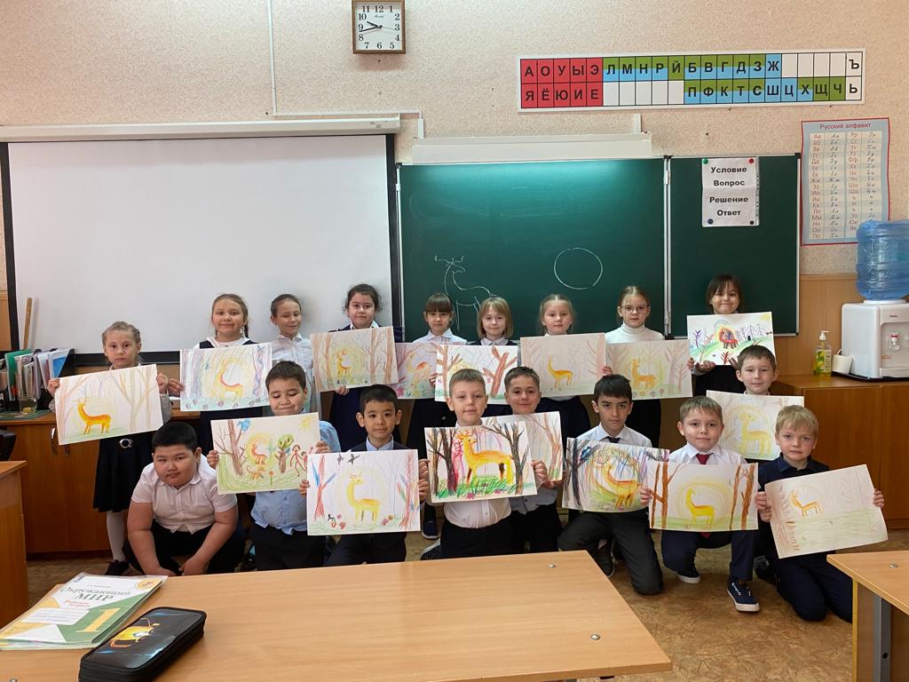 Учащиеся 1 А класса на занятиях Арт-студии осваивают технику рисования оленя. Олень — это благоприятный символ, ассоциирующийся с Солнцем, восходом, светом, чистотой, обновлением, возрождением, созиданием и духовностью. Из-за сходства оленьих рогов с ветвями образ оленя связан с Древом Жизни. Глядя на рисунки детей вспоминается песня "Лесной олень"...