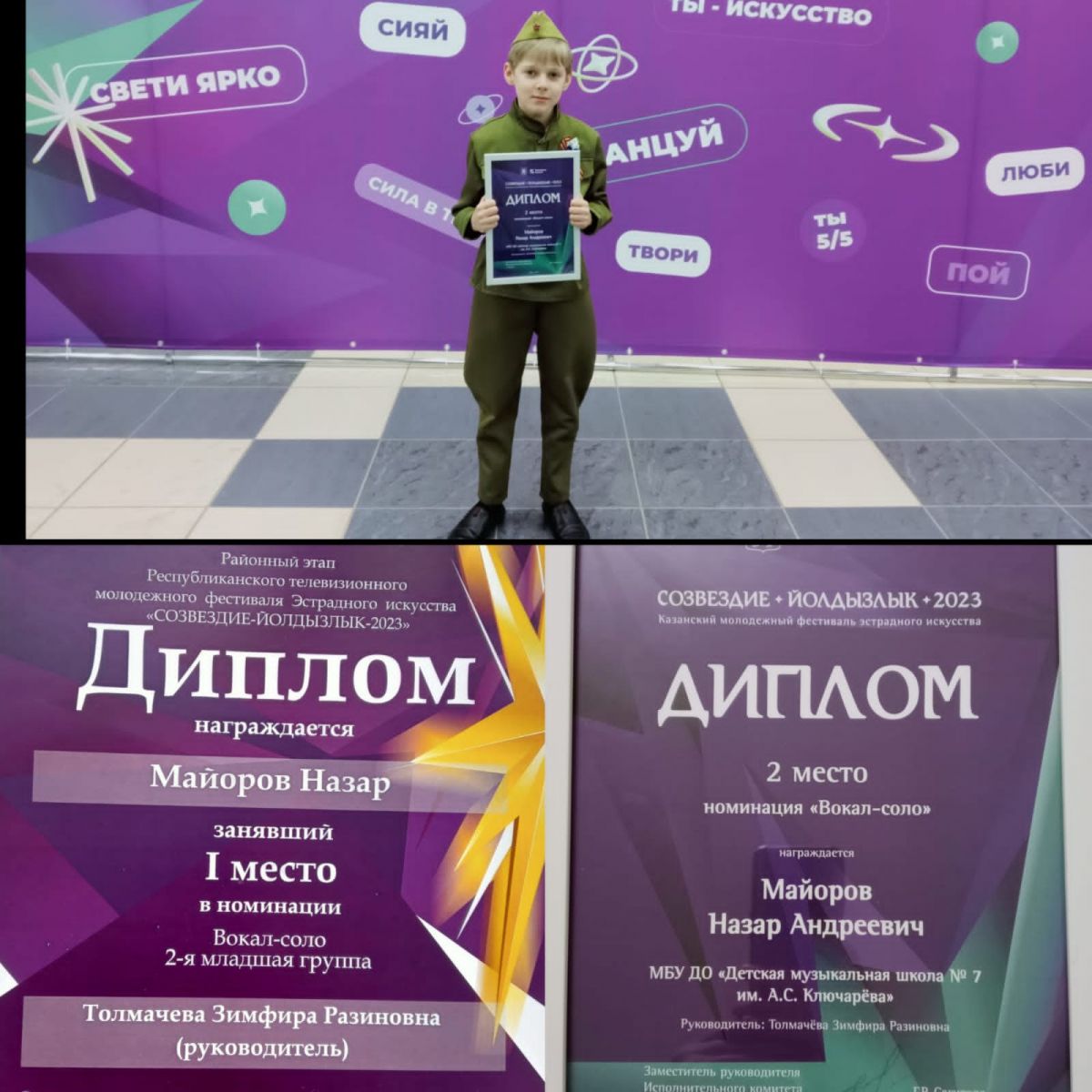 Поздравляем ученика 3 Б класса Майорова Назара с победой! В районном этапе фестиваля "Совездие Йолдызлык 2023" получил I место. В городском фестивале "Созвездие Йолдызлык 2023" Диплом II степени. Желаем дальнейших успехов и побед. Благодарим за подготовку педагога ДМШ №7 Толмачеву Земфиру Разиновну.
