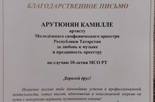 Поздравляем ученицу 8 А класса, Арутюнян Камиллу. Она награждена Благодарственным письмом Министерства культуры РТ. Камилла многие годы является участницей Молодёжного симфонического оркестра Республики Татарстан. Желаем творческого успеха, новых высот и достижений.