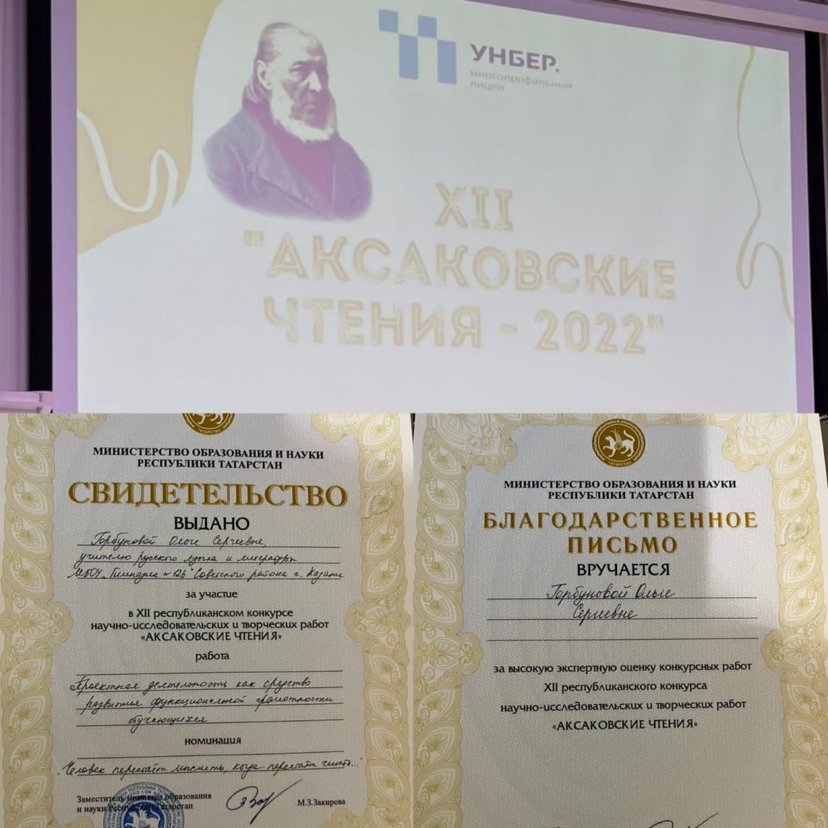 Сегодня Горбунова Ольга Сергеевна, учитель русского языка и литературы, приняла участие в XII Республиканском конкурсе научно-исследовательских работ «Аксаковские чтения»,проходившем на базе МАОУ «Многопрофильный лицей 11» Советского района г Казани. Она поделилась опытом работы,выступила с докладом «Проектная деятельность как средство развития функциональной грамотности обучающихся». Поздравляем и желаем дальнейших творческих успехов и новых достижений.