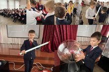 Сегодня у нас завершилась предметная неделя начальной школы. Был очень насыщенный день. День белый - день творческий. Девиз дня: «Удивление, разнообразие, творчество». Дети начальной школы сегодня смогли посетить в нашей гимназии интерактивную выставку гениального изобретателя и ученого Николы Теслы. У детей была возможность почувствовать себя в роли ученого 19 века. Они смогли "поуправлять молниями","стать джедаями", увидеть одно из первых изобретений ученого - "Лестницу Иакова" , почувствовать силу электростатического поля, управляя генератором Ван де Граафа. Но самое уникальное, школьники увидели фильм на большом экране о Николе Тесле и о новейших изобретениях современных учёных, которые продолжили идеи гениального ученого.