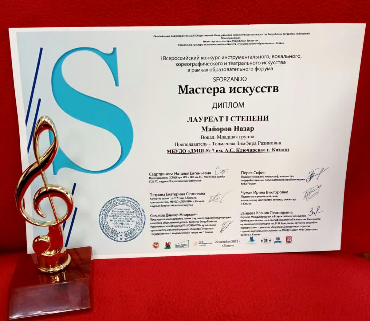 Поздравляем ученика 3 Б класса, Майорова Назара. Он лауреат I степени. Благодарим за подготовку педагога ДМШ №7 Толмачеву Земфиру Разиновну. Желаем дальнейших успехов и побед.