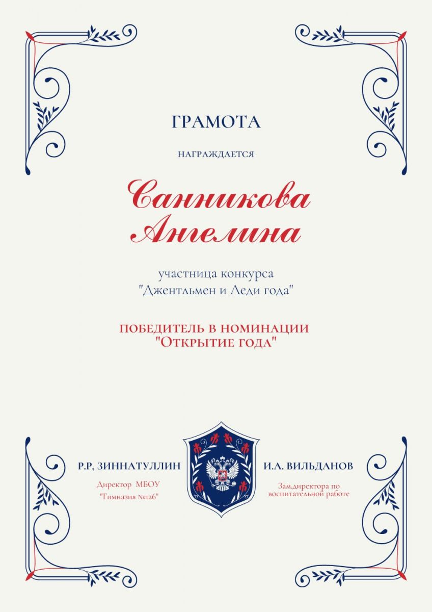 Леди года - Самохвалова Ульяна, ученица 9А класса.