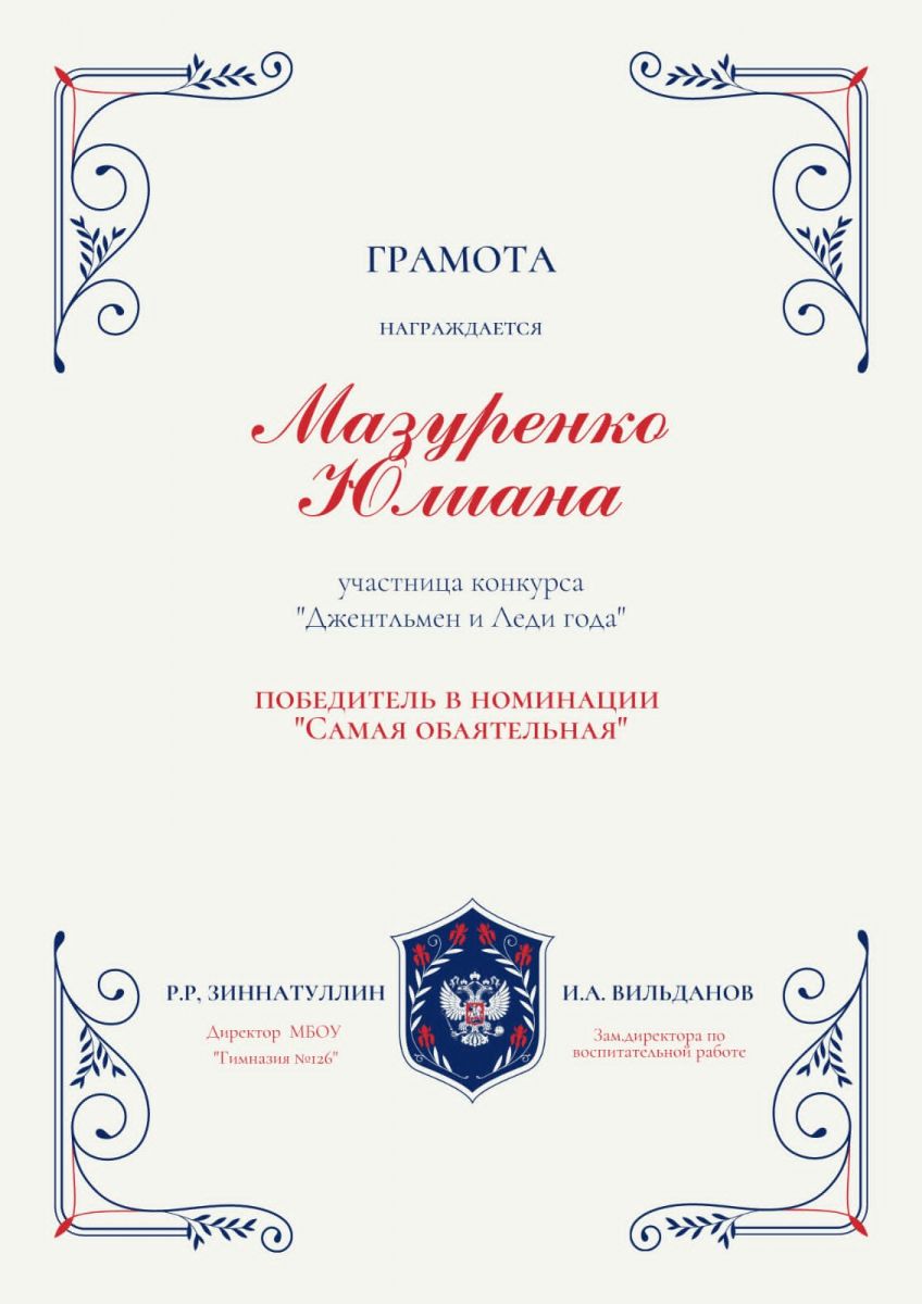 Поздравляем ученицу 10А класса, Мазуренко Юлиану!