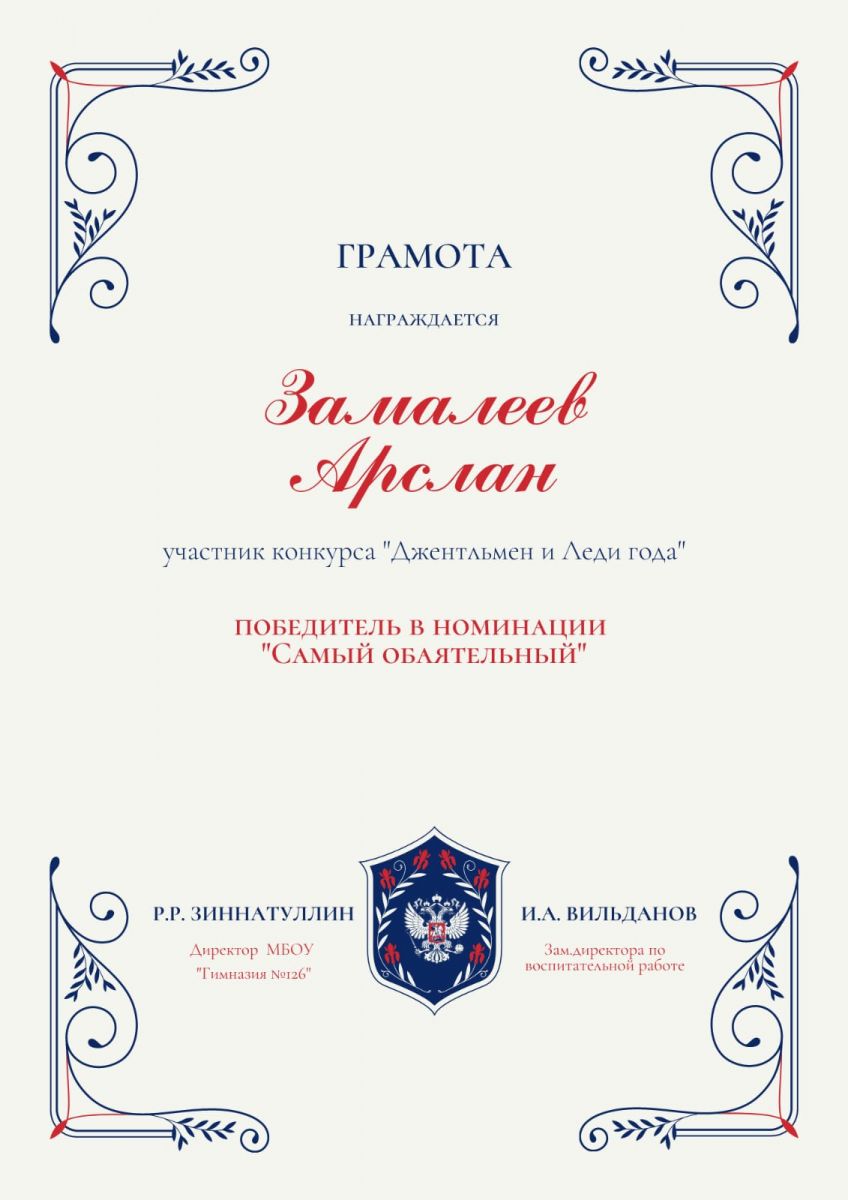 Поздравляем ученика 11 А класса, Замалеева Арслана!