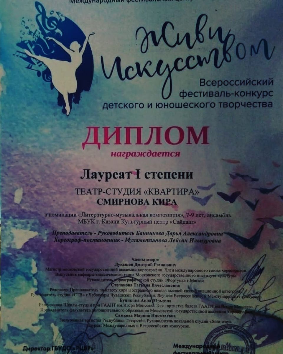 Благодарим за подготовку руководителей театр-студия"Квартира" и поздравляем с успехом!