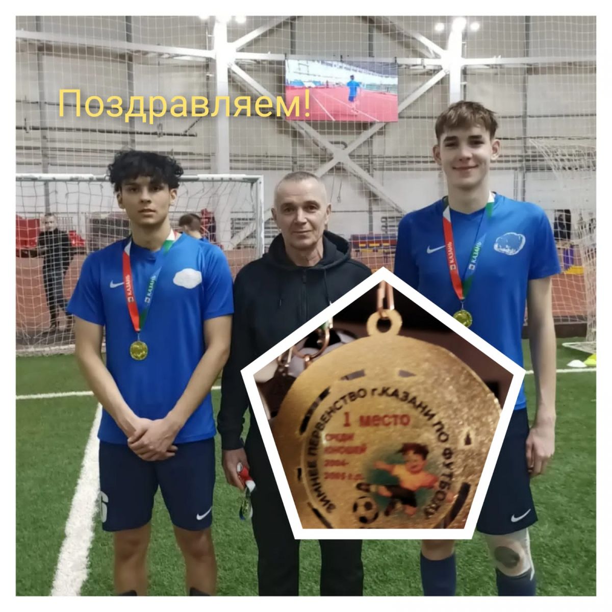 Поздравляем Замалдинова Алмаза, ученика 11 А класса , капитана юношеской команды по футболу с победой! Ура! 1 место в зимнем первенстве города Казани по футболу. Выражаем слова благодарности тренеру ДЮСШ Вахитовского района Гилязетдинову Гусману Ильдусовичу. Желаем дальнейших побед! Футбол - командная игра и настрой тренера, капитана - это половина успеха команды! Алмаз, мы все тобой гордимся!