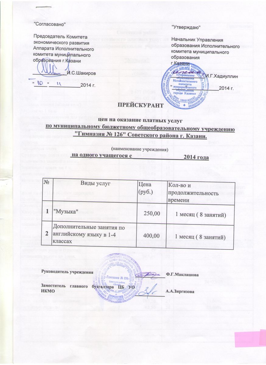 прейскурант цен на оказание платных услуг (музыка, английский язык)