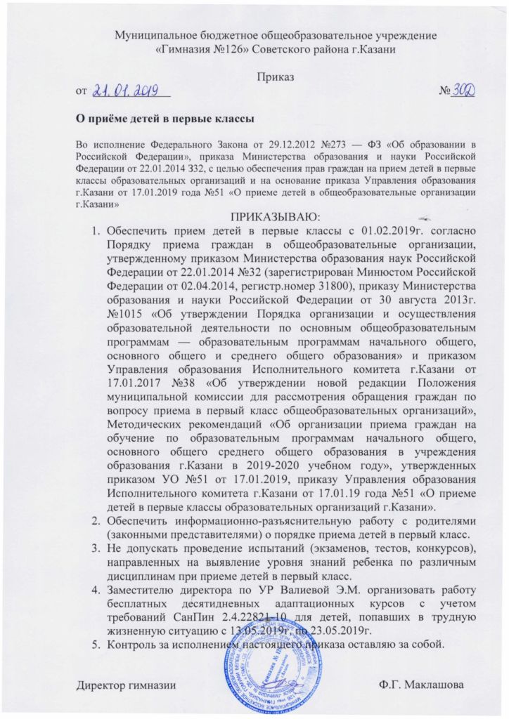 Приказ о зачислении в 1 класс 01.02.2019 Приказ о зачислении в 1 класс 06.02.2019 Приказ о зачислении в 1 класс 09.02.2019