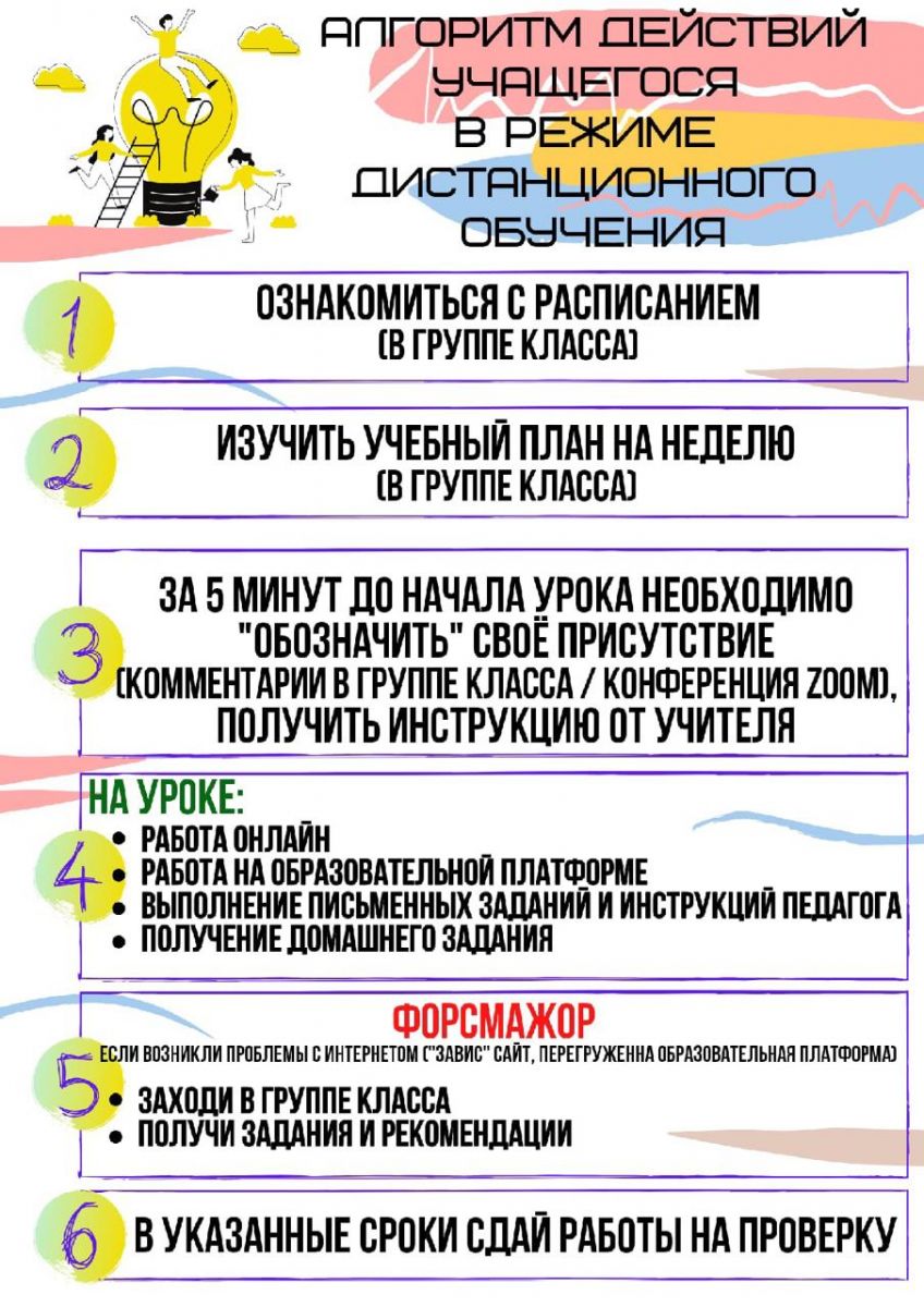Алгоритм действий учащегося в режиме дистанционного обучения