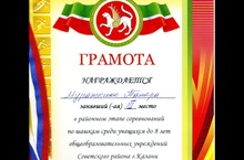 Поздравляем Мураткину Тамару (1 класс "В" ) занявшую III место в районном этапе соревнований по шашкам среди учащихся до 8 лет образовательных школ Советского района г. Казани