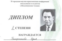 17 февраля 2017 года школьники нашей школы участвовали на II городской научно-практической конференции школьников и студентов "Абсалямовские чтения". Тимерханова Иделя, ученица 9б класса, была удостоена диплома 2 степени. Руководители: Макарова И.А., Залялиева Л.Р. Поздравляем!