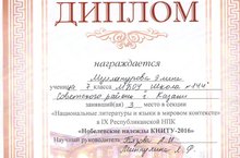 В субботу, 23.04.2016 года на базе гимназии №140 состоялась Республиканская НПК "НОБЕЛЕВСКИЕ НАДЕЖДЫ-2016". Из нашей школы на конференции успешно выступила ученица 7 а класса Мулланурова Элина. По итогам выступления Элина заняла III место. Благодарственным письмом за призера были награждены ее руководители - учителя татарского языка и литературы Гаязова А.И., Миннуллина Л.Р. Поздравляем!!!