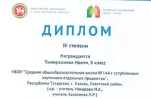 Муниципальное бюджетное общеобразовательное учреждение «Средняя общеобразовательная школа №144 с углубленным изучением отдельных предметов» Советского района г. Казани - новости