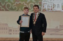 Ученик 7 "В" класса Галимов Адель, член команды"Юнит" ( победитель суперфинала"Кожаный мяч") был удостоен награды мэра города Казани Ильсура Раисовича Метшина!