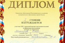 27 ноября в МОАУ «Гимназия 37» состоялась XIII НПК им. К.Д.Ушинского. Из нашей школы приняли участие 4 учащихся. По итогам конференции трое из них стали победителями! Ученики 4 г класса Макаров Егор – Диплом I степени; Ученица 4 г класса Кобзева Екатерина – Диплом II степени; Ученик 5 б класса Кабиров Нурсиль – Диплом I степени.