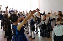 На переменах, одновременно на 3 вестибюлях ученики проходили эти станции квеста: музыкальную, танцевальную, интеллектуальную, художественную, а в некоторых и станцию лингвист.