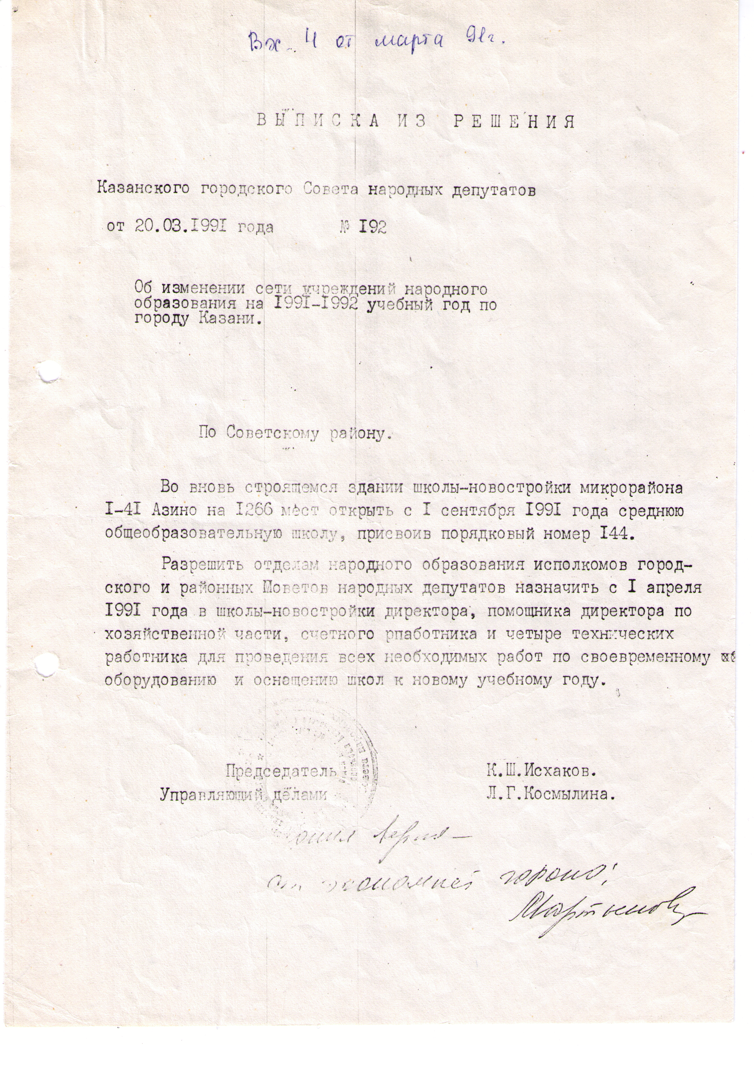 Муниципальное бюджетное общеобразовательное учреждение «Средняя общеобразовательная школа №144 с углубленным изучением отдельных предметов» Советского района г. Казани