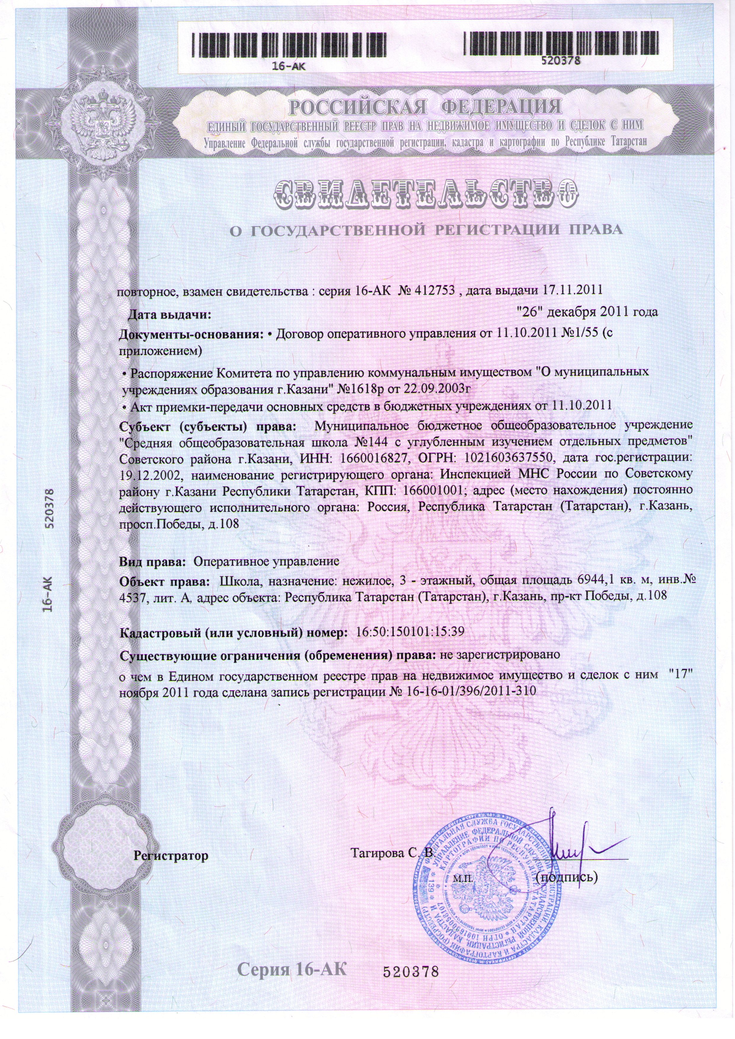 | Адрес: | Республика Татарстан, 420140, г. Казань, Проспект Победы, д. 108 |