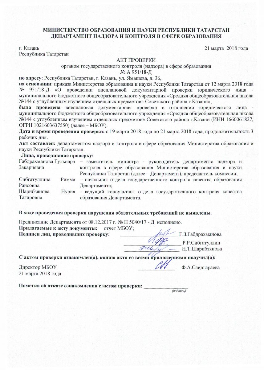 Муниципальное бюджетное общеобразовательное учреждение «Средняя общеобразовательная школа №144 с углубленным изучением отдельных предметов» Советского района г. Казани