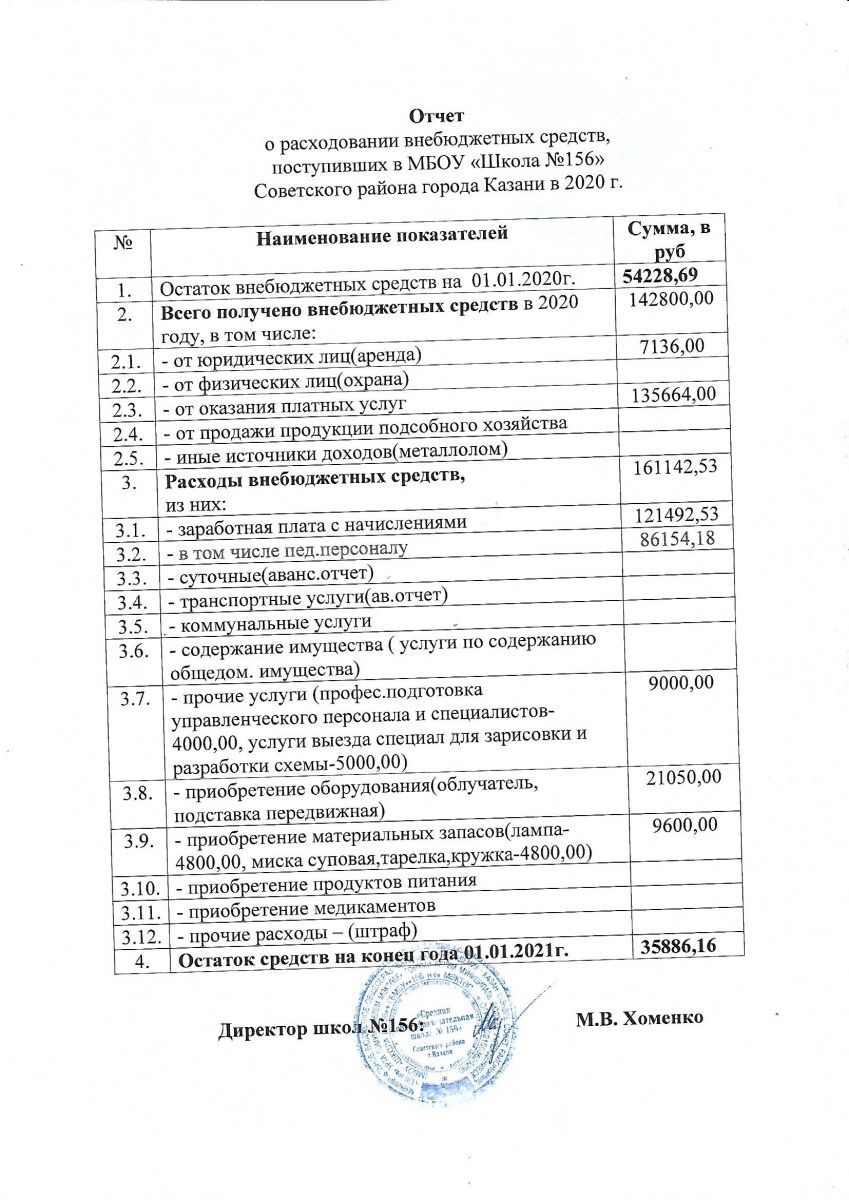Отчет о привлечении и расходовании внебюджетных средств 2020