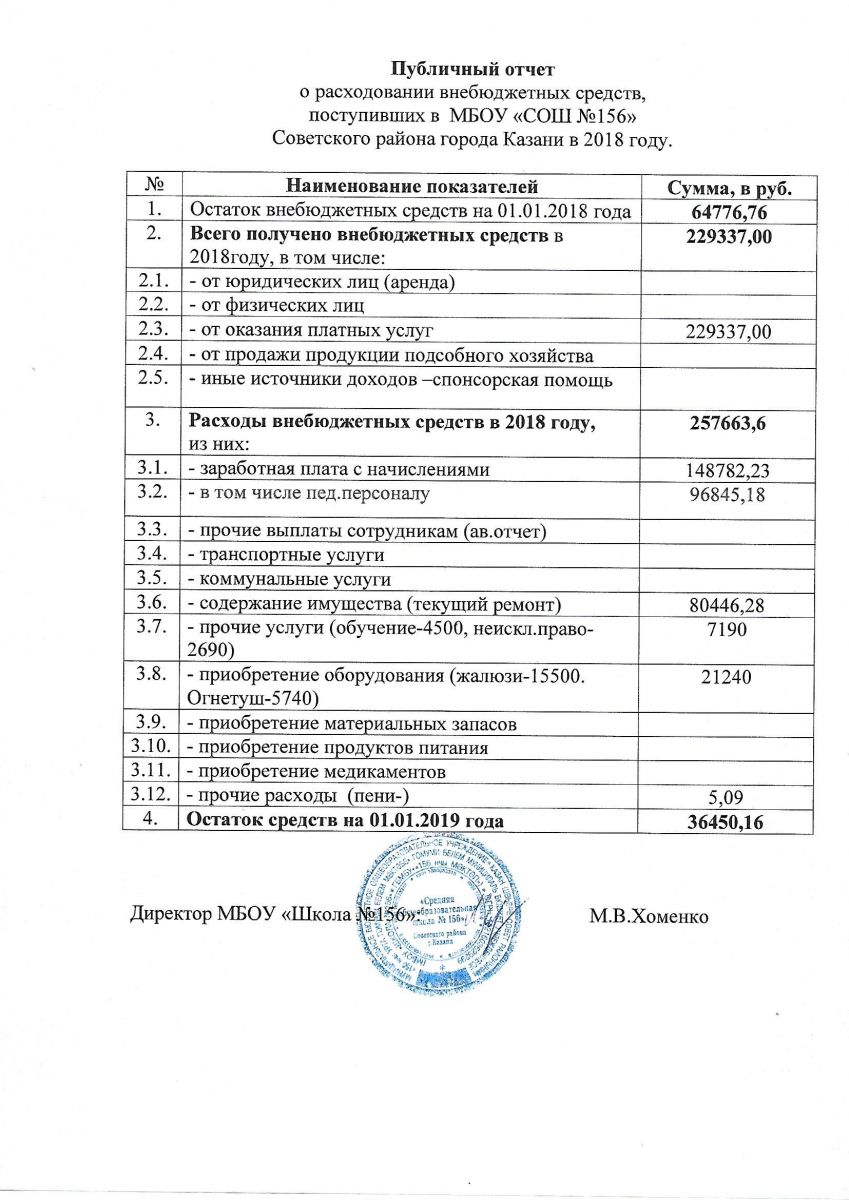 Отчет о привлечении и расходовании внебюджетных средств 2018