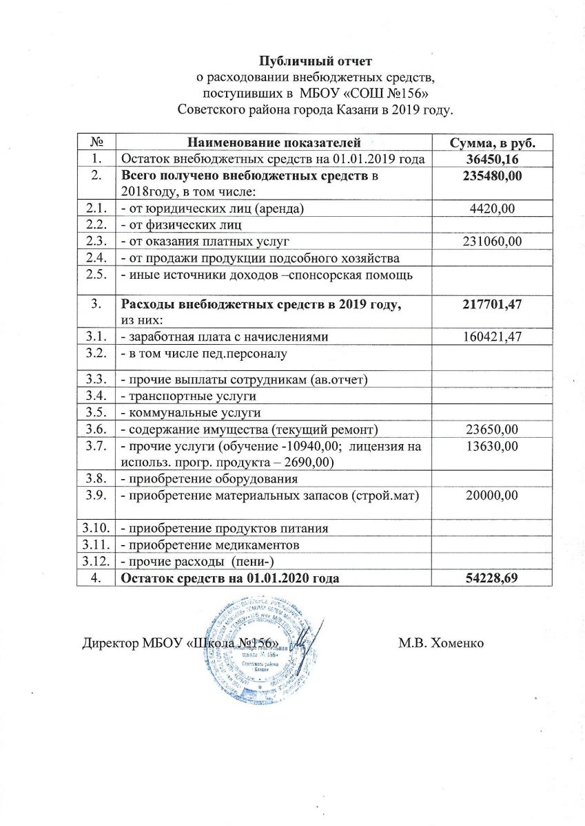 Отчет о привлечении и расходовании внебюджетных средств 2019