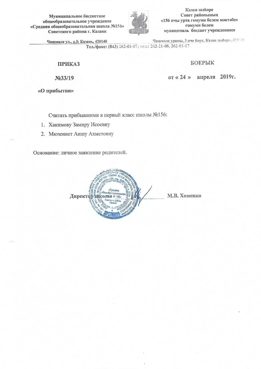Приказ "О прибытии" №33/19 от 24 апреля 2019 (2 человек).