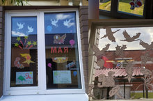В преддверии празднования 77-й годовщины Великой Победы на окнах образовательных учреждений, квартир, домов, а также предприятий и организаций размещают праздничные поздравления и патриотические символы.