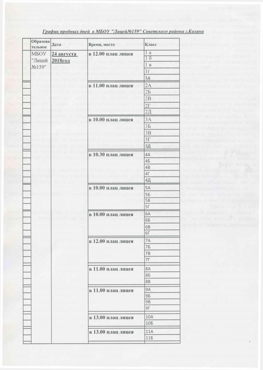 Уважаемые родители и обучающиеся лицея! 24 августа 2018 года состоится ПРОБНЫЙ ДЕНЬ. Место встречи - ПЛАЦ лицея. ГРАФИК ПРОБНОГО ДНЯ