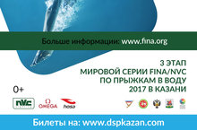 С 31 марта по 2 апреля 2017 года на спортивном объекте «Дворец водных видов спорта» (г.Казань, ул. Сибгата Хакима, 70) состоится 3 этап Мировой серии FINA/NVC 2017 по прыжкам в воду с участием ведущих спортсменов мира.